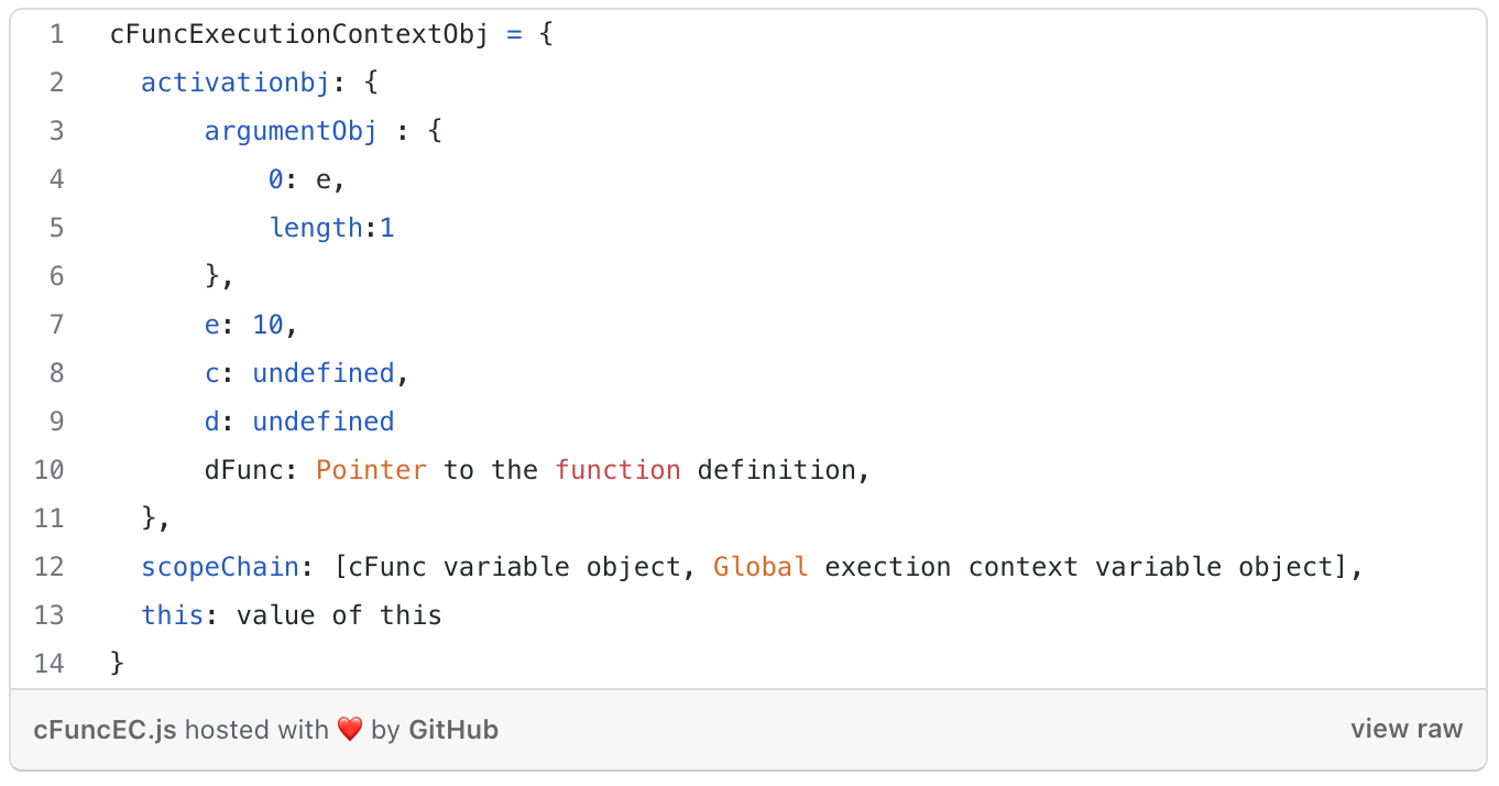Creation Phase가 끝난 후 상태 ( 함수 컨텍스트 ) - 18번째 줄 dFunc 실행 시점