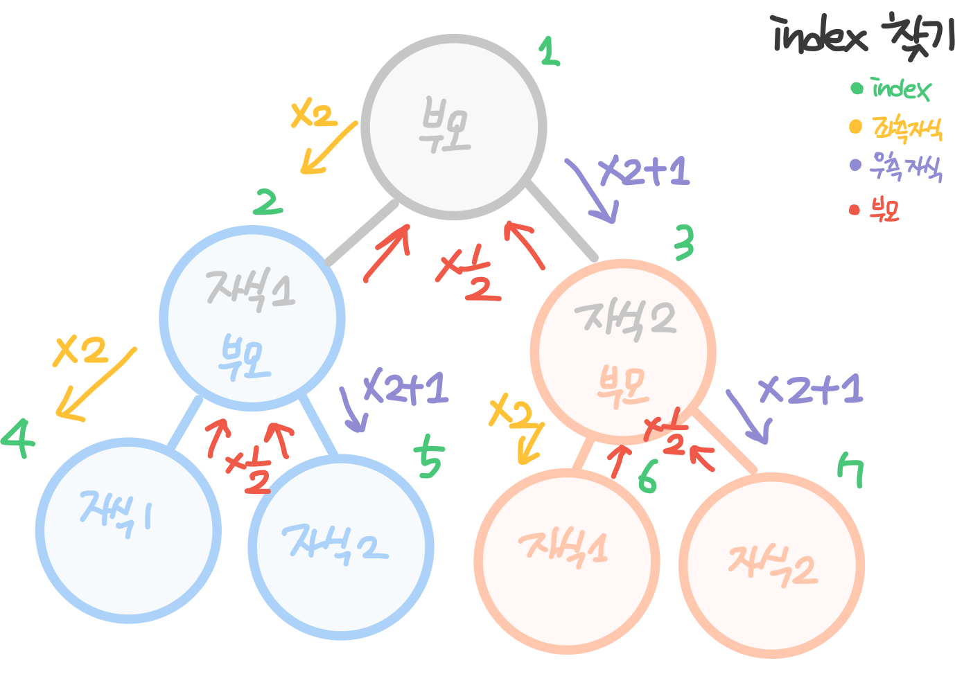 Index 값을 좌측 자식은 부모 노드의 x2,