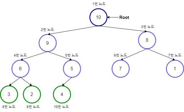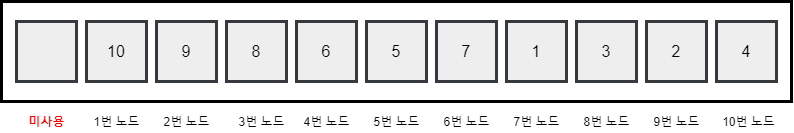 배열 형태로 보면 1번 노드부터 10번 노드까지 Index에 순서대로 넣는 형태
