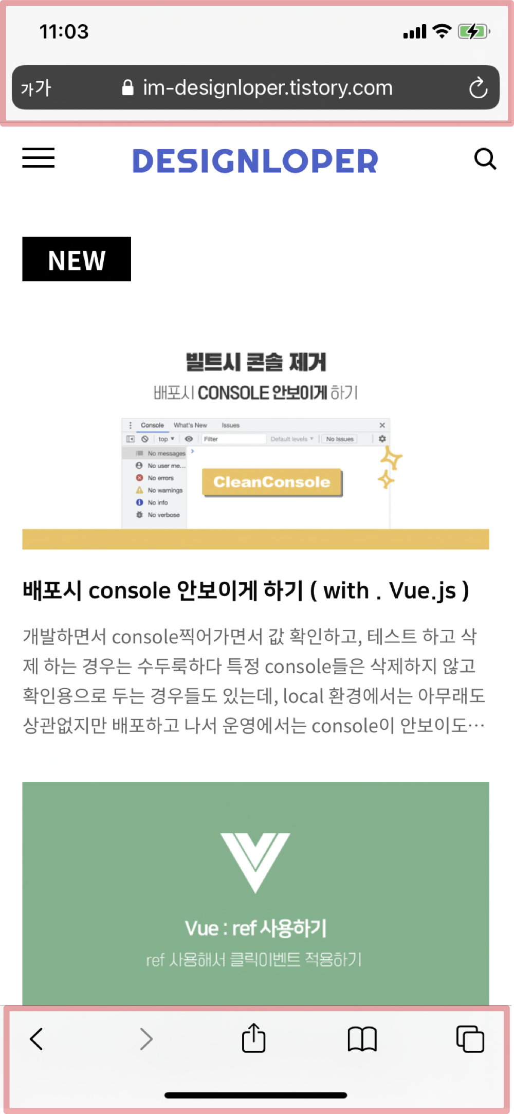 홈페이지 수정을하고 모바일에서 테스트 하다가 발견한것