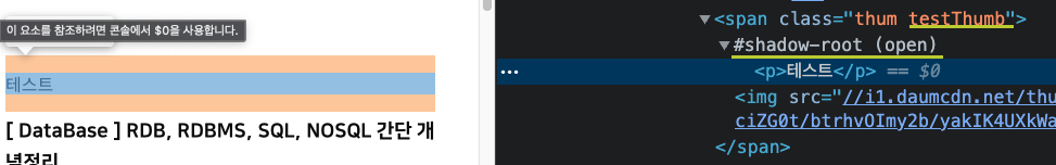 이 부분으로 shadowRoot를 열어주고 삽입해 주는 것이다.