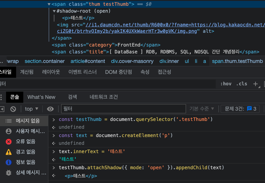 간단한 실습으로 실제로 Shadow DOM을 삽입하는 방법을 설명하고자 합니다.